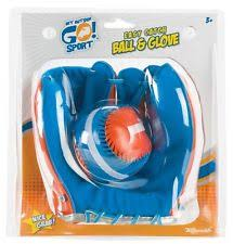 Toysmiths Easy Catch Ball and Glove is perfect for the beginner baseball player. The ball features Velcro for an easier game of catch. Ages 3 and up.
