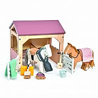Delightful countryside cottage with a natural wood roof, shutters, cut out windows and space in the attic to make a bedroom. Includes a retro style set of furniture.