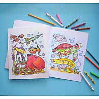 Color beautiful aquatic worlds full of fish, turtles, crabs, whales and more. This child coloring book features 40 pages of art. Paper is thick enough for crayons, markers and pencils. Perforated pages can be torn out for sharing or hanging on the fridge. This sea life coloring book is printed in Canada on 30% recycled paper and featuring wonderfully incentive art.