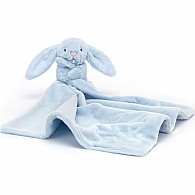 A perfect gift for newborns, the Bashful Bunny Soother is Jellycat's most loved Bashful Bunny in a soft fur, with long lopped ears, a pink suedette nose and stitched eye detail holding a square shaped soother, un-stuffed and irresistibly soft to touch. Made from recycled fibers and neatly rolled up and presented with a Baby Jellycat grosgrain ribbon.