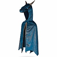 This gorgeous cape is fearless with its spectacular fiery blue eyes, dramatic golden spikes and horns, and a stuffed head with great design details. This cape will get your little one ready for countless hours of exciting playtime and fantasy-filled adventures! The fabric is soft, comfortable, and designed to look like a mysterious midnight blue sky with sparkles imitating millions of stars in the sky! This is the ultimate cape to encourage creative and imaginative play, and it's of course machine washable.
