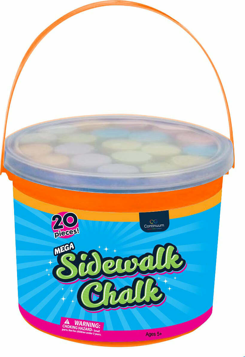 Mega Sidewalk chalk contains 20 large sticks in 9 unique colors. Turn your sidewalk into a wonderful mosiac of art!