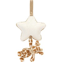 The Bashful Giraffe Musical Pull is a soothing gift to help babies drift off. Our most loved giraffe has gorgeous yellow fur with dark orange patches made with recycled fibers and holds on tight to a concertina pull. Gently pull the giraffe and an original Jellycat lullaby will play from the stylishly monochrome trimmed star.