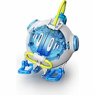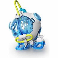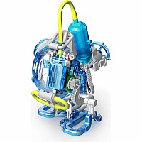 Discover how a metal-air electrochemical cell stores and discharges electrical energy using a simple saltwater solution. Explore the science of electricity, currents, and electric potential. An innovative pump mechanism provides a steady drip of salt water onto the magnesium plates and the robot walks for up to one hour on just one drop of salt water! The “fuel” bottle is easy to clean, refill, and reuse for hours of exploration.