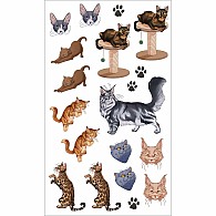 50 original temporary tattoo designs for cat-loving kids, featuring kittens and cats of all colors and breeds, and playful poses.